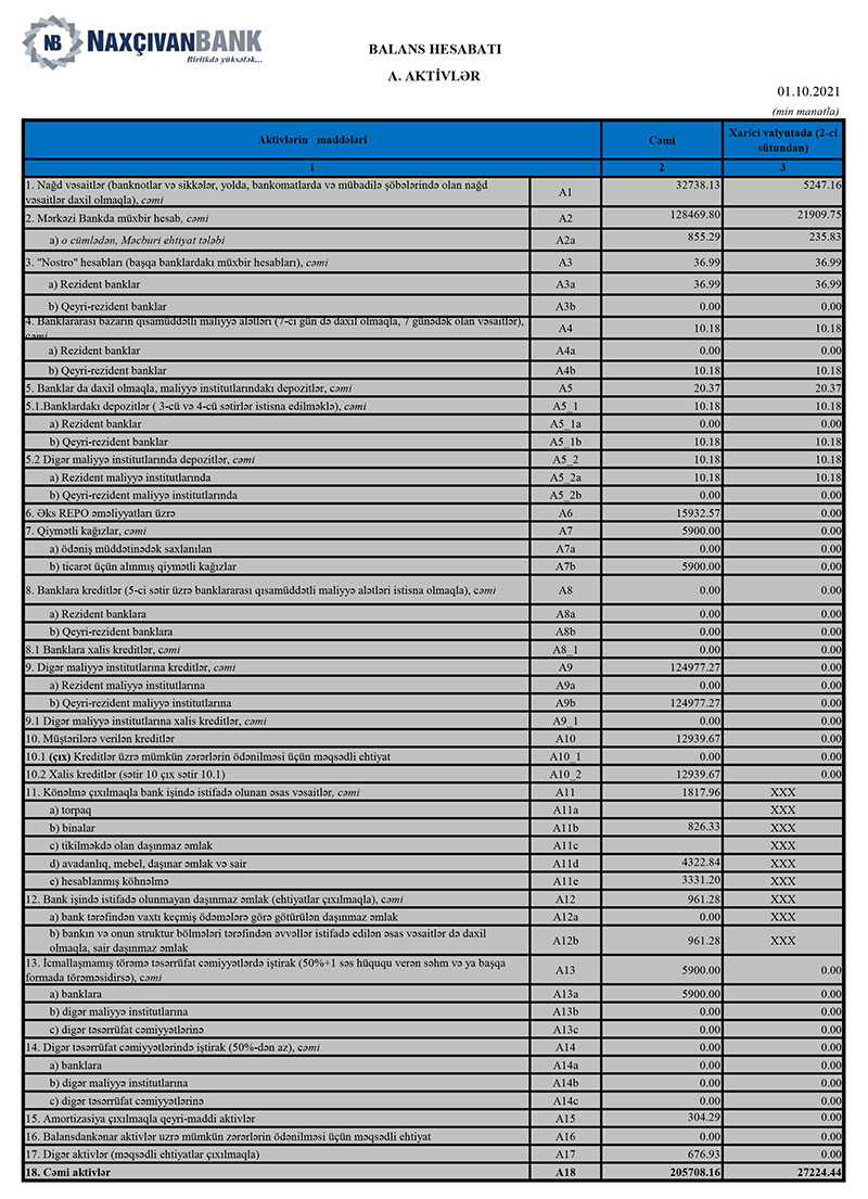 30 Sentyabr 2021-ci il tarixində “Naxçıvanbank”ən məcmu kapitalı 91 milyon 85 min manat təşkil edib.