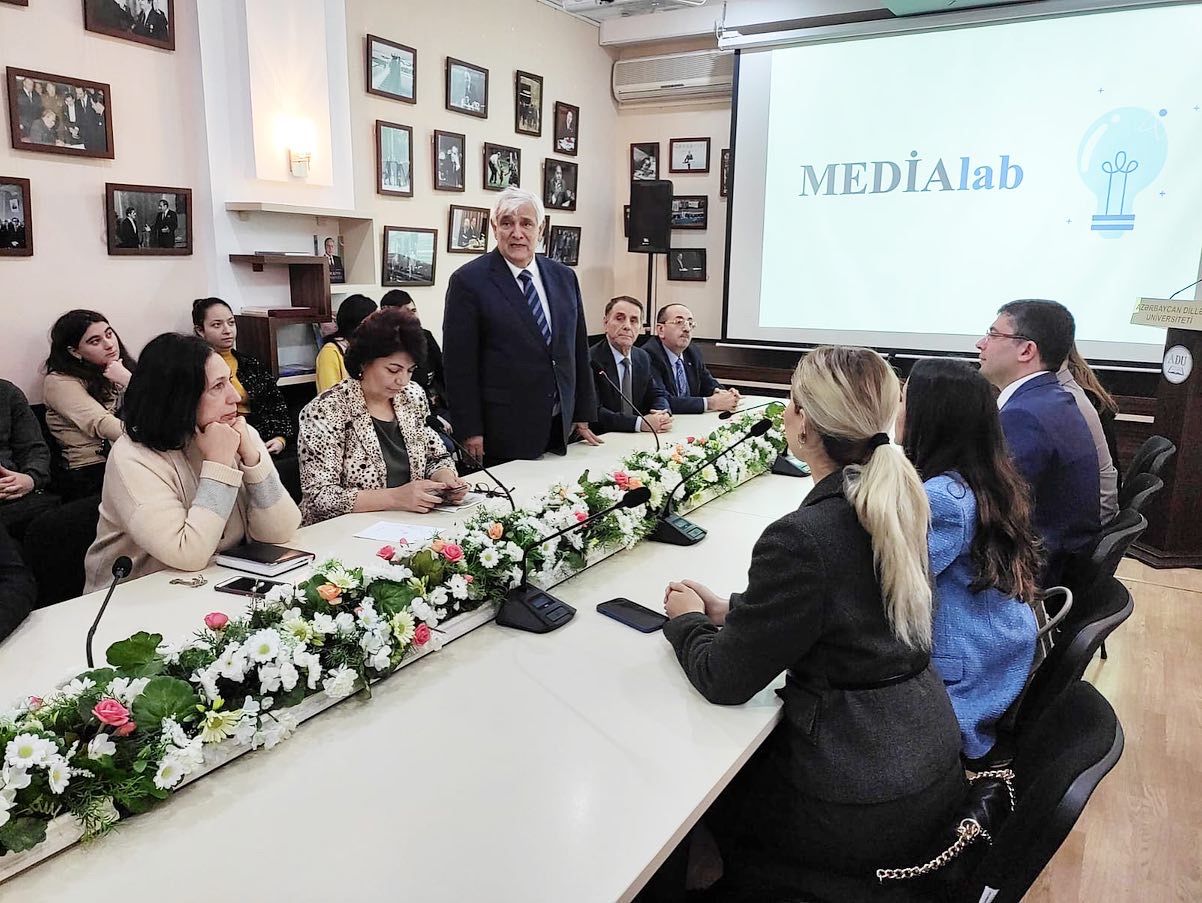 Universitetin tələbə və müəllim heyətinin iştirak etdiyi görüşdə Medianın İnkişafı Agentliyinin Layihələr şöbəsinin müdiri Ləman İsgəndərova “MEDİA Lab” layihəsinin təqdimatını edib, layihənin təşkili mexanizmləri müzakirə olunub.