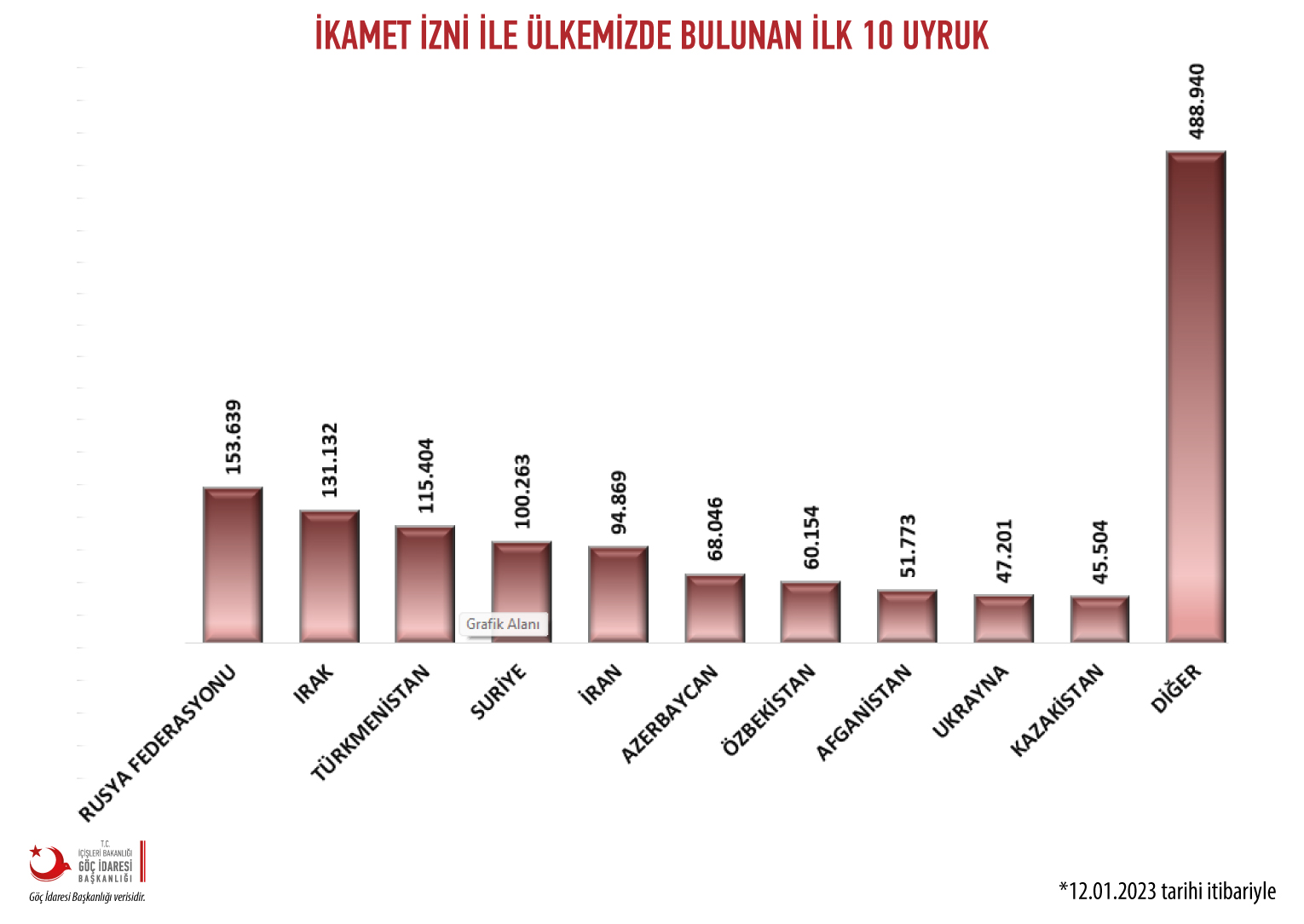 1-ci yerdə 153 min 639 icazə ilə ruslar, 2-ci yerdə 131 min 132 icazə ilə iraqlılar, 3-cü yerdə 115 min 404 icazə ilə türkmənlər, 4-cü yerdə 100 min 263 icazə ilə suriyalılar, 5-ci yerdə 94 min 869 icazə ilə iranlılardır.
