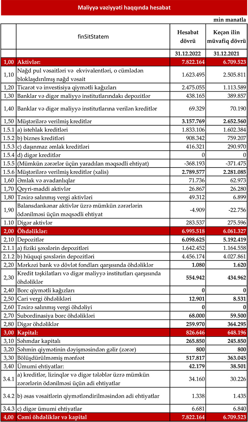 “Kapital Bank” ASC 2022-ci il üzrə maliyyə göstəricilərini açıqlayıb.
