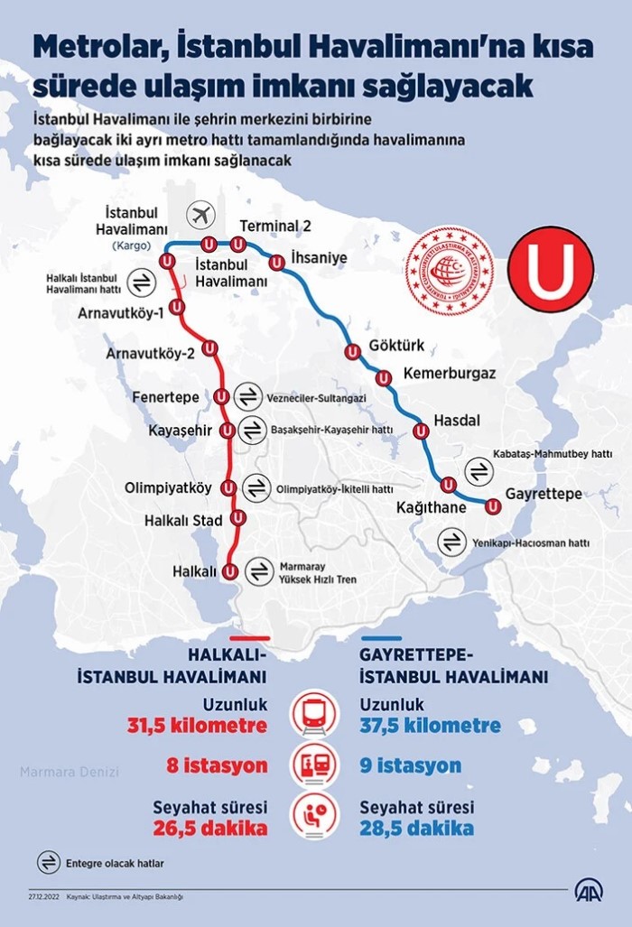 Marja xəbər verir ki, açılış tədbirində Türkiyə Prezidenti Rəcəb Tayyib Ərdoğan, "Gündəlik 800 min nəfər sərnişin daşımaq gücündə olan bu metro xətti sayəsində Kağıthane-dən İstanbul Hava Limanına 24 dəqiqəyə çatmaq mümkün olacaq" deyib. O, metronun 1 ay pulsuz xidmət göstərəcəyini açıqlayıb.