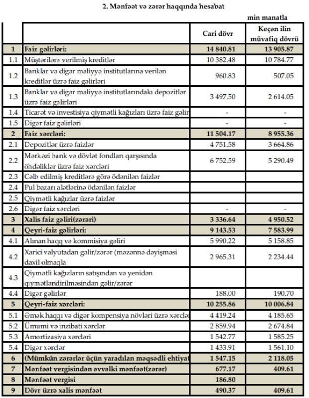 "Günay Bankı"ın əməliyyat xərcləri əməliyyat mənfəətindən daha çox artıb.