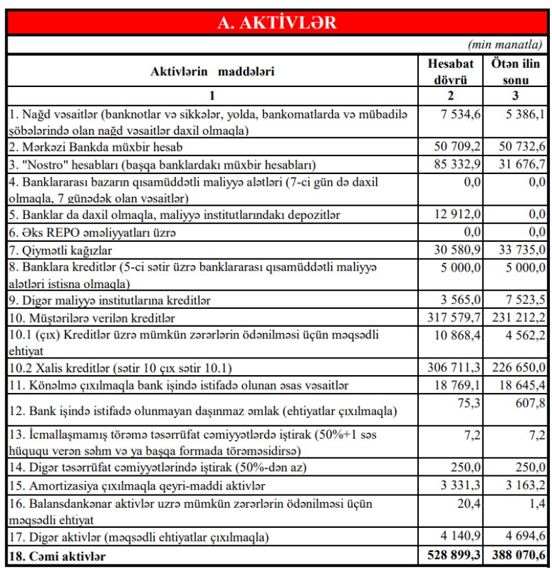 Ümumi olaraq hesabatlara əsasən bank 2022-ci il ərzində əsas maliyyə göstəriciləri üzrə illik fəaliyyətini uğurla tamamlamışdır.